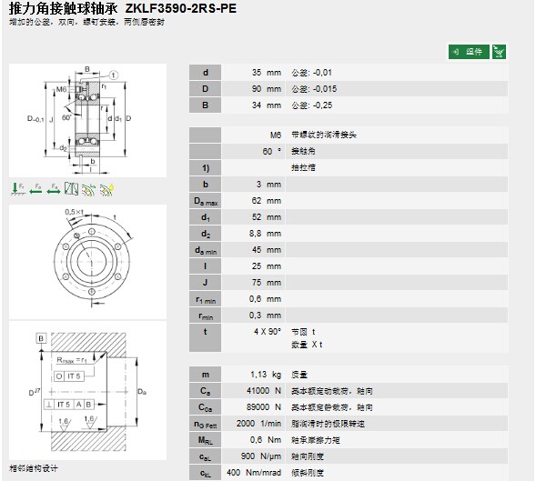 | 軸承型號: | ZKLF3590-2RS-PE | |