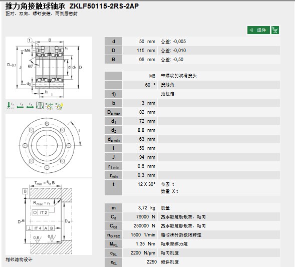 | 軸承型號: | ZKLF50115-2RS-2AP | |