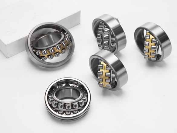 調(diào)心滾子軸承具有雙列滾子,外圈有1條共用球面滾道,內(nèi)圈有2條滾道并相對軸承軸線傾斜成一個(gè)角度。這種巧妙的構(gòu)造使它具有自動(dòng)調(diào)心性能,因而不易受軸與軸承箱座角度對誤差或軸彎曲的影響,適用于安裝誤差或軸 撓曲而引起角度誤差之場合。該軸承除能承受徑向負(fù)荷外,還能承受雙向作 用的軸向負(fù)荷。