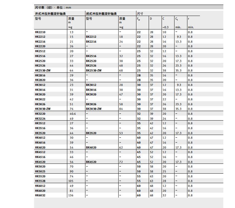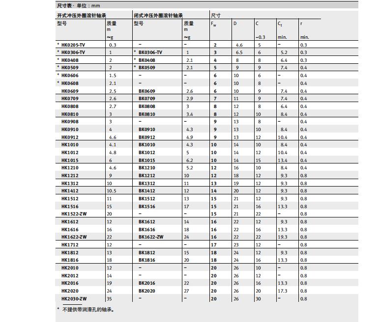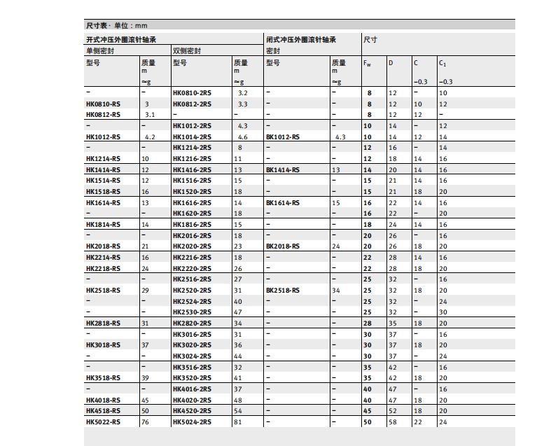 INA沖壓外圈的類型:HK HN HK..RS HK..-2RS BK BK..RS