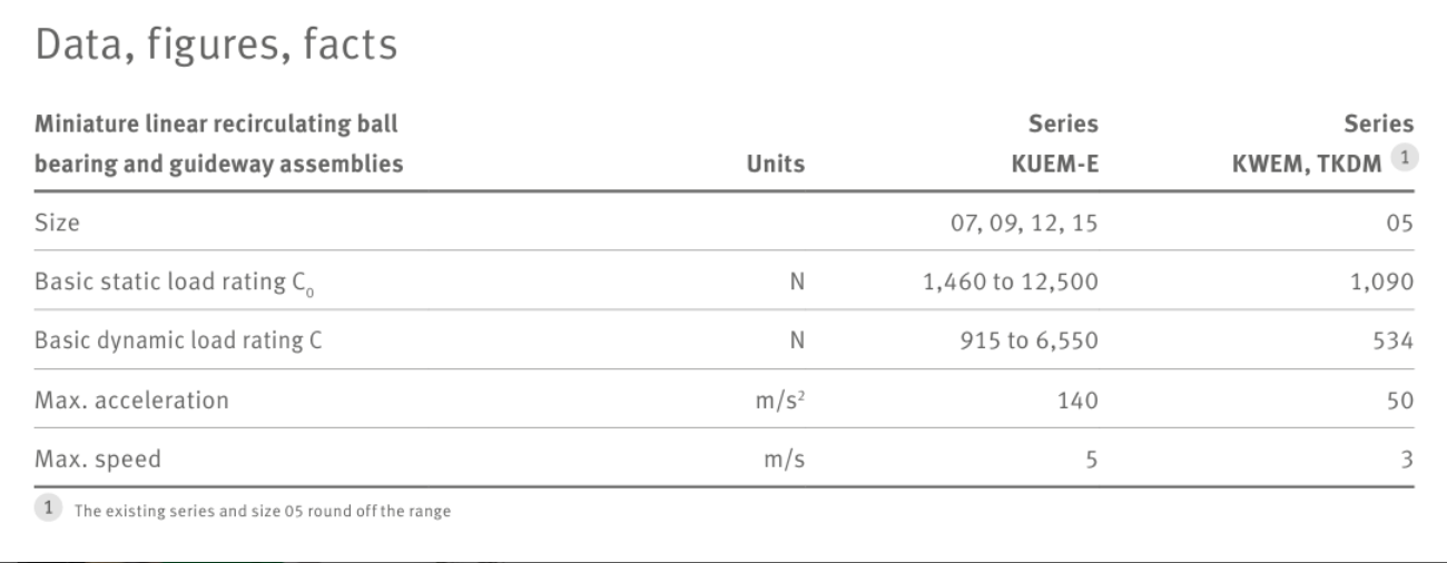 尺寸為 07 至 15 的 KUME-E 微型線性循環(huán)球軸承和導(dǎo)軌組件在導(dǎo)軌和滑塊的每一端都有一個參考面或定位面,允許導(dǎo)軌系統(tǒng)隨時安裝在任何位置并對齊。組件的可互換性和易于安裝的特點在采購、儲存和組裝方面提供了相當(dāng)大的物流和金錢優(yōu)勢。 改進(jìn)的密封和滾動體保持力